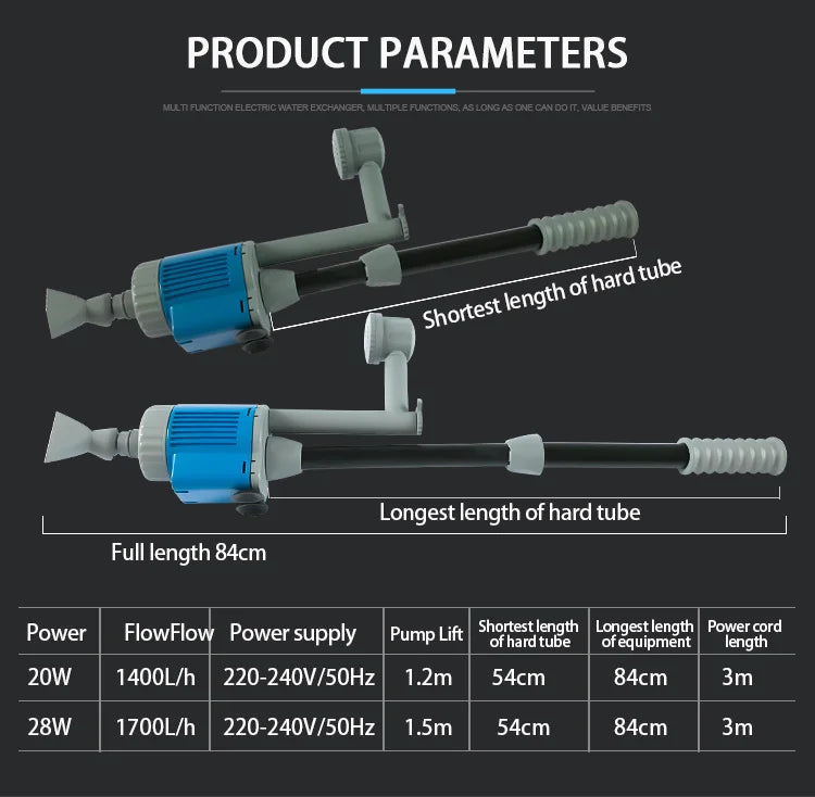 1 x Aquarium Water Changer Cleaner 20W/28W