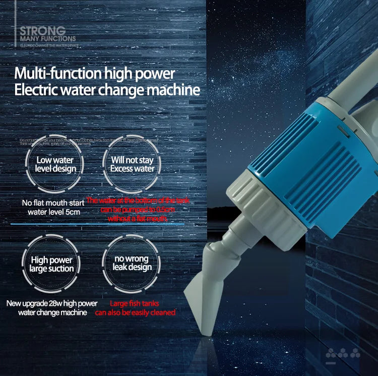 20/28W Electric Aquarium Fish Tank Water Change Pump Aquarium Cleaning Tool Water Changer Gravel Cleaner Siphon Filter Pump
