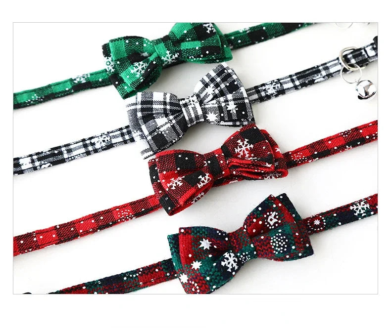 Bring holiday cheer to your pet with our Christmas Bowknot Plaid Bell Collar—an adorable and practical accessory designed for cats and small dogs.