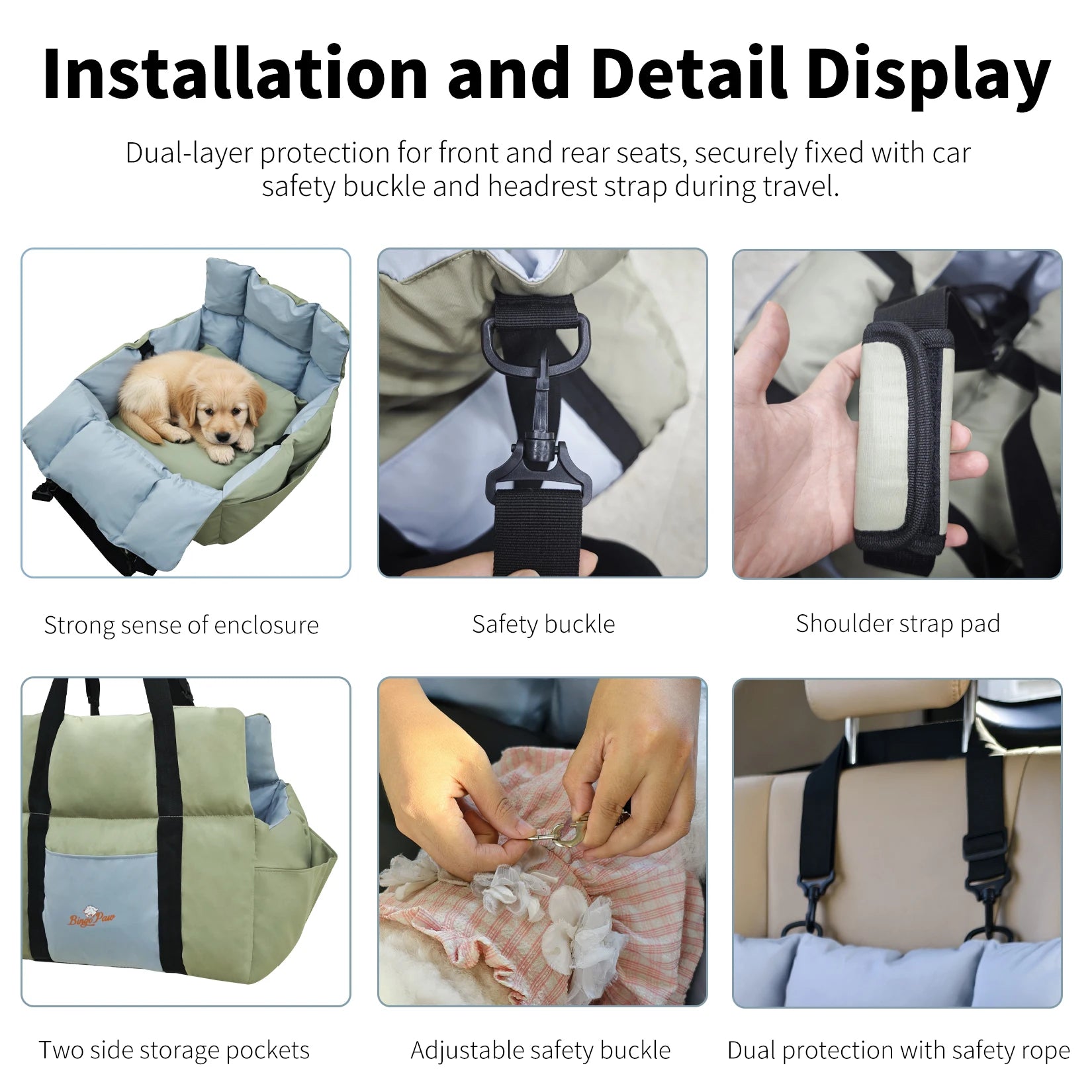 On long drives, comfort supports calm behavior and safer travel. The elevated design doubles as a booster seat so your dog can see outside, reducing anxiety and helping you drive with confidence. A soft, high-resilience PP cotton cushion cushions bumps for a smoother ride, while the breathable nylon construction ensures year‑round comfort.