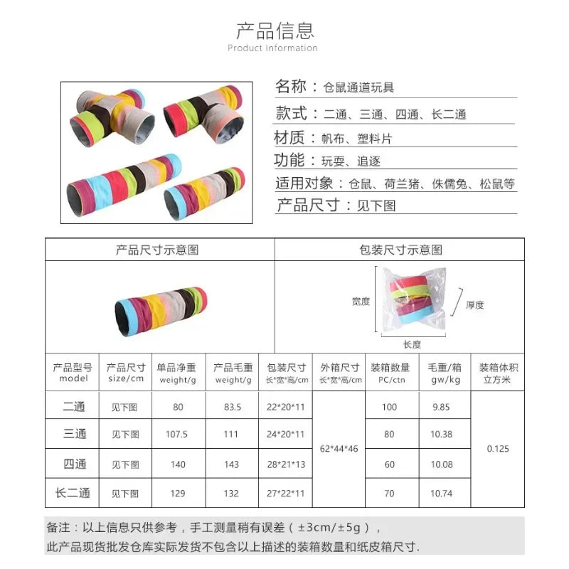 What sets this product apart in the realm of small animal toys is its unique collapsible feature, allowing for easy storage and transport. Whether at home or on the go, your pets can enjoy a fun adventure wherever you are! The vibrant colors and spacious design of the tunnel not only attract your pets but also encourage natural exploration and exercise.