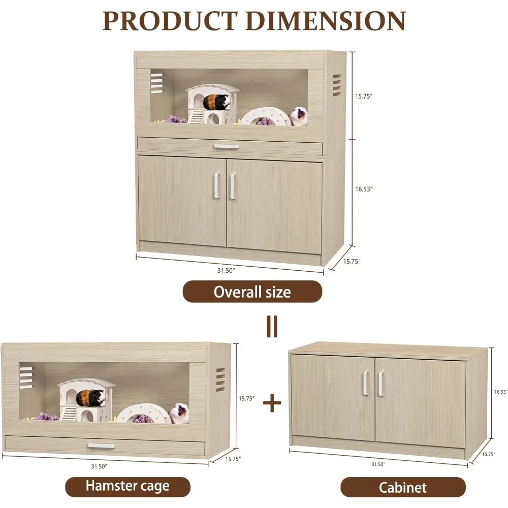 - Easy to Assemble: 31.5"L x 15.75"W x 32.28"H. Our guinea pig cage comes with pre-drilled holes for easy installation and comes with step-by-step instructions to guide you through the process.