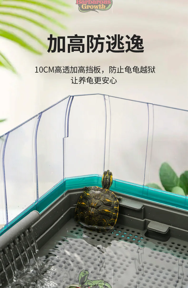Adopting high transparent fence, 360° barrier-free viewing is easily achieved. Pets live in an open ''full floor-to-ceiling window'' villa with a wide field of view, reducing the sense of crampedness, providing a comfortable habitat experience for turtles, and helping them grow more happily in a comfortable environment.