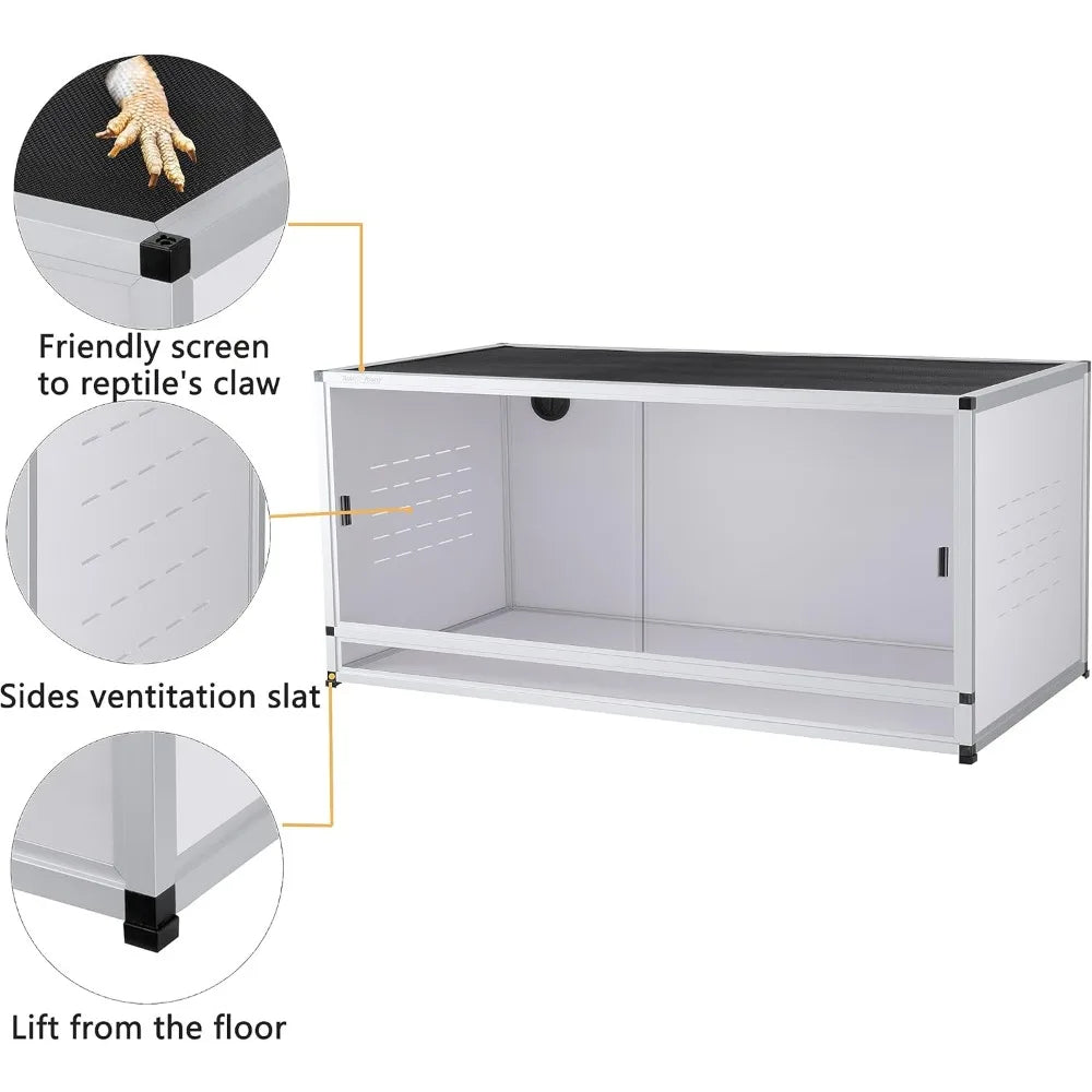 PVC Reptile Enclosure 76 Gallon Large Reptile Terrarium 44''x20''x20 Tank for Bearded Dragon Gecko Lizard Snake,Wide Breeding L