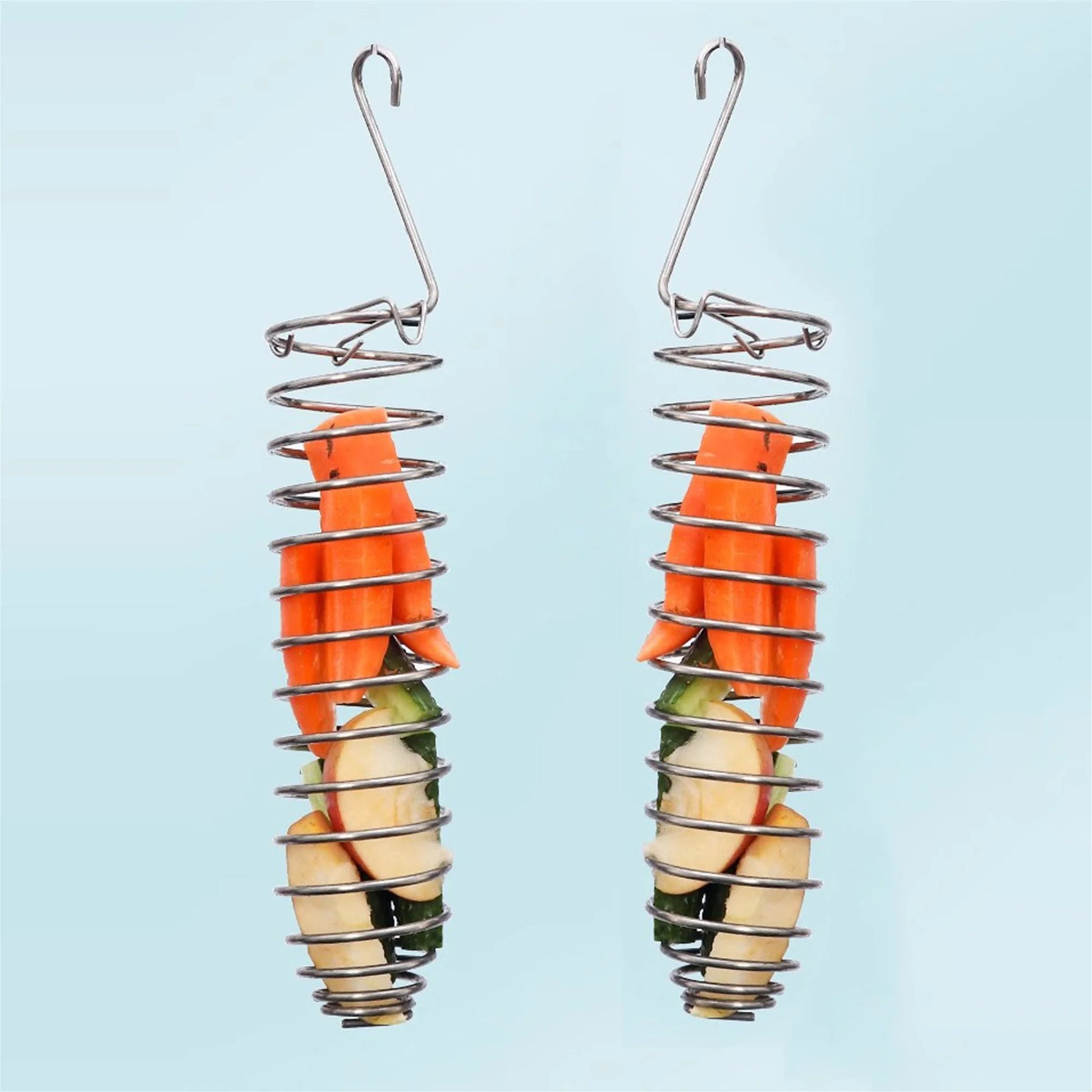 Stainless Steel Bird Feeder Hanging Parrot Fruit Treat Skewer Foraging Toy
