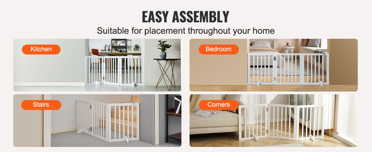 The SucceBuy Free Standing Dog Gate with 3 Panels offers a stylish, versatile barrier that keeps your furry friend safely contained in any space. Its freestanding design means no drilling or wall mounting—you can position it wherever you need within minutes, even in narrow passages.