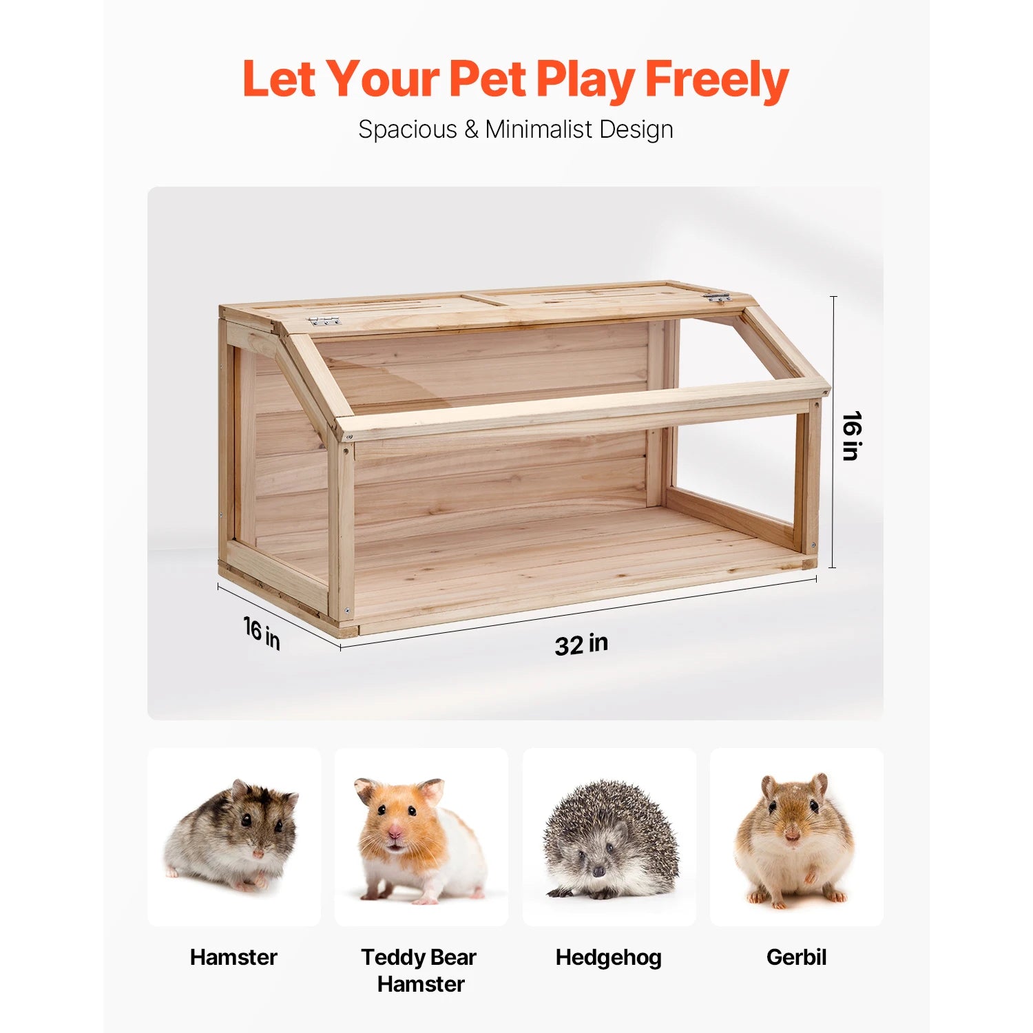 Create the ideal home for your hamster with this 48-inch wooden hamster cage. Designed for comfort, ventilation, and clear visibility, it keeps your pet safe while letting you enjoy every adorable moment. The cage features a 270-degree adjustable top panel that opens wide for effortless cleaning and convenient daily access, plus three transparent sides for easy observation from any angle.