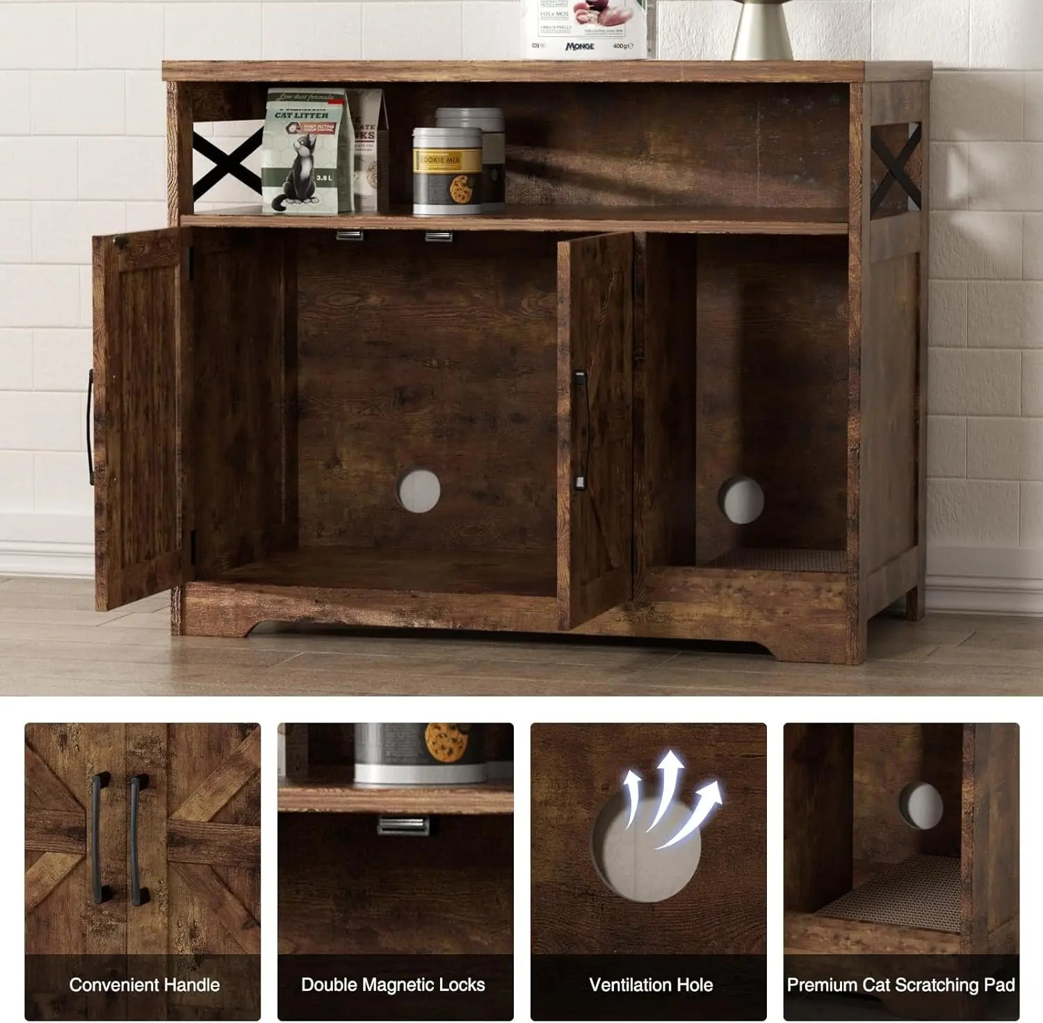 Elevate your home decor while catering to your feline friend with the Vabches Wooden Cat Litter Box Enclosure. This stylish and functional solution not only conceals the litter box, providing a clean aesthetic, but also features a built-in scratch pad and a convenient storage shelf. Made from high-quality, non-toxic wood, this durable enclosure ensures safety for both your pet and your family.